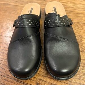 Clarks Collection Women's Black Leather Mules - Size 8, New