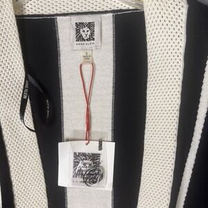 NWT ANNE KLEIN Women Small Black White Striped Open Front Cardigan Sweater