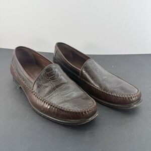 Johnston & Murphy Brown Croc Loafers Men's 10.5 M Leather Casual Shoes Slip On