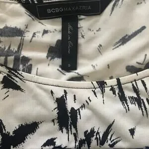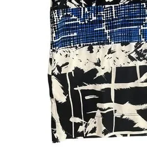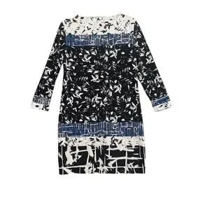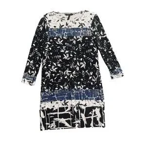 BCBG MaxAzria Womens Size Small White Black Blue Abstract Print 3/4 Sleeve Dress
