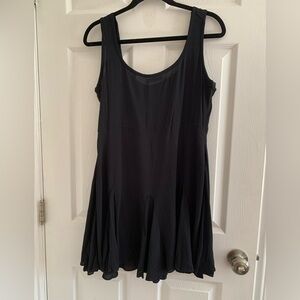 Elegant black mini dress by Doen. Sleeveless design with a flowing skirt. Perfect for any occasion.