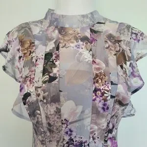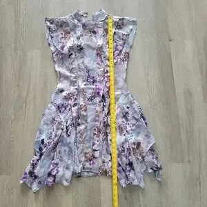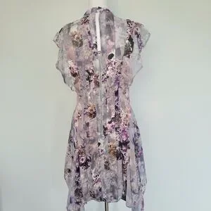 Excellent pre-owned condition. Elegant women's dress featuring a beautiful floral pattern in gray, purple, and white by ALL SAINTS Fleur Lucia dress. Perfect for any occasion. Perfect for wedding, cocktail party, holiday, fall, winter, spring, summer, events, date night, birthday, celebrate, anniversary, Valentine's Day, graduation, and formal events.