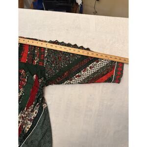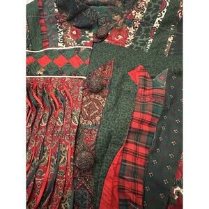 Handmade Patchwork Christmas Quilted Jacket Button Front Lined Green Red