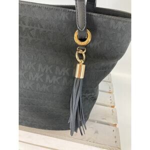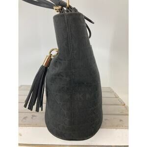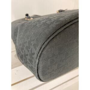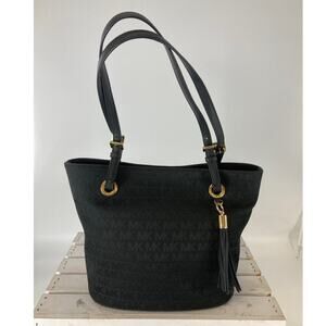 MICHAEL KORS, LARGE BLACK SIGNATURE CANVAS SHOULDER BAG