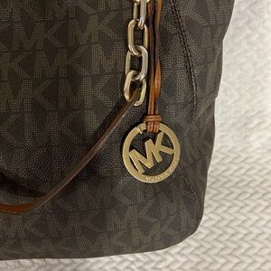 Michael Kors Signature Brown Tote Bag Leather Detail Purse