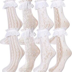4 Pairs Women's Lace Ankle Socks Ruffle Frilly Mesh for Women
