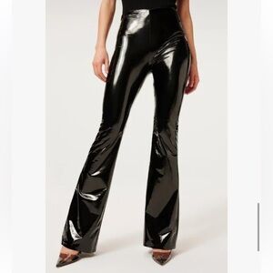 NEW! Good American pull on Glossy Black liquid vinyl Flare Pants