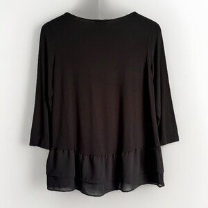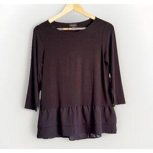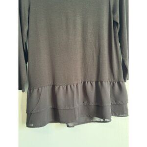 J.Jill Wearever Women’s XS Black Tunic Top Long Sleeve Sheer Hem Quiet Luxury