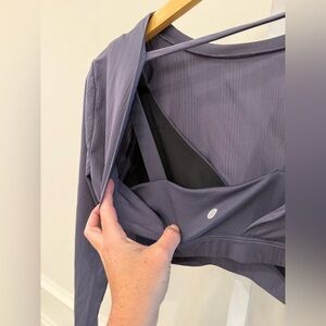 Soft texture enlivens this sporty crewneck sports bra top designed in a modern cropped silhouette with a built-in shelf bra for support. 13" length (size Medium) Crewneck Long sleeves with thumbhole cuffs 85% recycled polyester, 15% spandex Machine wash, tumble dry Imported This product meets Nordstrom Sustainably Sourced Materials criteria: contains at least 30% sustainably sourced materials