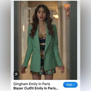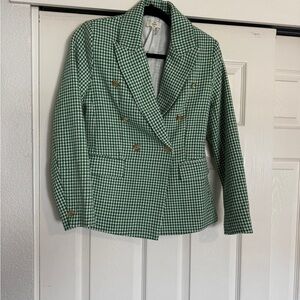 Entro Green Houndstooth Blazer with Gold Buttons