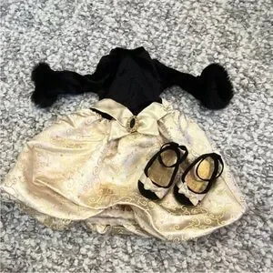 American Girl Doll Midnight Holly Dress & Shoes Black Gold Cream For 18" Doll
