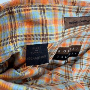 Keywords: Robert Talbott shirt, mens casual shirt, plaid pattern, button up, long sleeve, cotton fabric, preppy style, fall colors, classic fit, button collar, workwear, outdoor, heritage