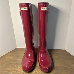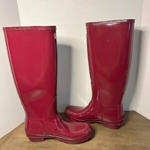 Hunter Original Tall Gloss Waterproof Rubber Rain Boots Plum Purple Women US 9