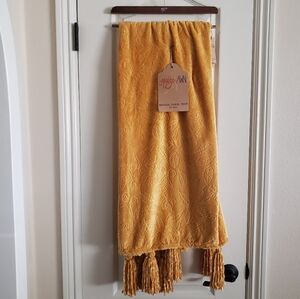 Beautiful leaf pattern embossed tassel throw in a rich yellow color. Perfect for adding warmth and style to any room.