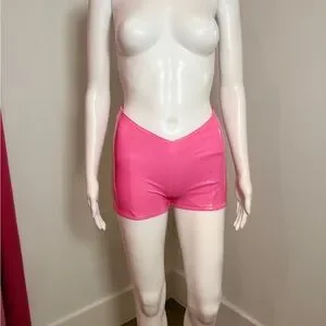 Never worn! Size 0. Glossy pink high waist shorts. Bold and eye-catching. Perfect for a standout look.