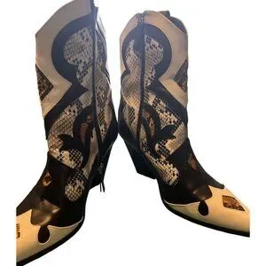 Lemonade Western Style Black White Cowboy Boots Snake Print Accents Womens Size
