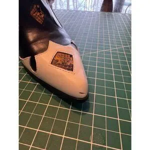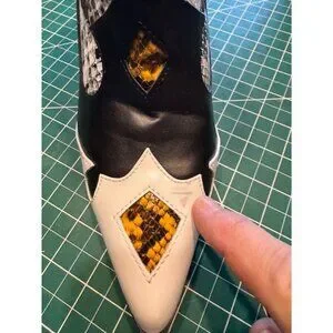 • Faux leather construction with intricate snake print accents