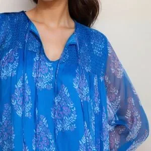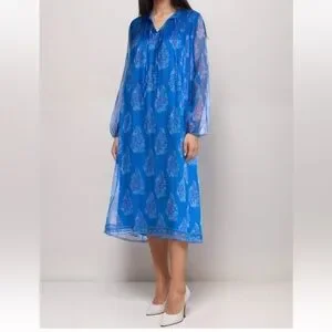 The Johnny Was Blaire Midi Dress is a stunning balance of elegance and ease, designed for women who love boho-chic style with a feminine touch. Crafted from 100% silk, this soft, lightweight, and semi-sheer midi dress drapes beautifully, creating a breezy silhouette that’s perfect for day-to-night wear. The floral design brings fresh vibrance, while smocked shoulders and a split v-neckline with tie detail adds charm. The long sleeves and a pullover fit make this dress as comfortable as it is stylish, while the relaxed shape flatters effortlessly. Ideal for casual outings, resort escapes, or evening gatherings, this ladies’ silk dress is a versatile piece that transitions seamlessly through the seasons.