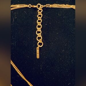 Nine West gold tone necklace with triple layer design. Features stylish pendants. Shortest strand measures 16”- 19”. Longest strand is 20” adjustable to 23”.