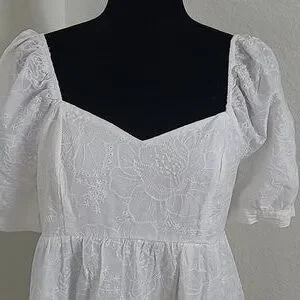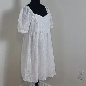 ANDREE BY UNIT White Mini Dress Baby Doll Eyleet Mini Dress Size Large