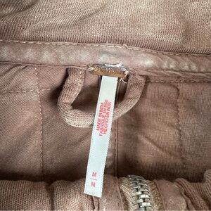 Free People Womens Jacket Sz M Tan Brown Dolman Quilted Knit Zip Up Bomber Coat