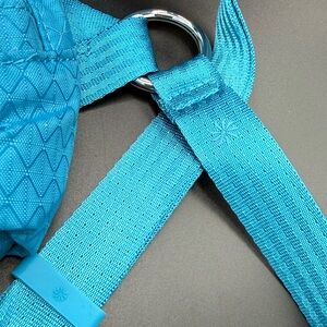 Athleta belt bag in pacific blue. One mesh pocket inside and one large pocket on the back side of the bag. Adjustable straps for waist or crossbody, zips to close.