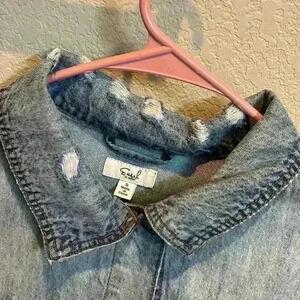 Easel leopard Jean jacket with a distressed look size small but can be sized up.