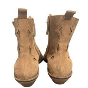 Unleash your inner cowgirl with these fabulous camel suede western-style ankle boots. The delicate cutout patterns and soft suede texture blend to create a boot that’s as stylish as it is comfortable. Perfect for pairing with your favorite denim or a casual dress for a touch of down-home glamour on your everyday outings.