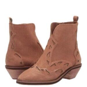Kelsi Dagger Cliff Mocha Brown Suede Pointed Toe Block Heel Western Ankle Boots