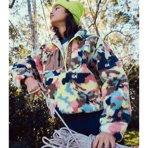 Free People Hit The Slopes Fleece Pullover Jacket Womens L Camo Cozy Casual Boho