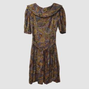 Vtg Romper Dress Tie-Back Cotton Paisley Multicolor Button Down Cottagecore S