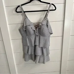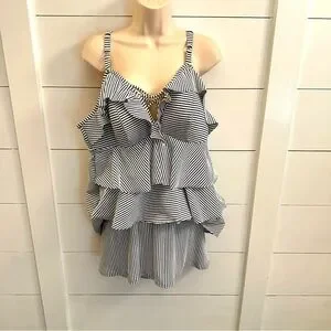 CACIQUE SWIM 18 blue striped ruffle top and bottom woman Tankini coastal