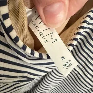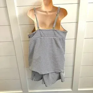 CACIQUE SWIM blue striped top and bottom woman Tankini coastal resortwear beach vacation athleisure