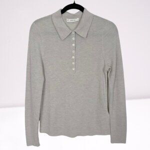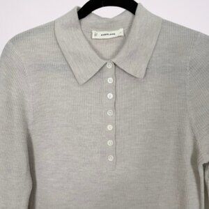 Everlane Women's Merino Wool Soft Pibbed Polo Sweater Long Sleeve Size XL Beige