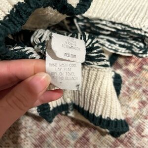In good vintage condition. Minor pilling throughout. A very thick and warm cotton sweater. Forest green & cream colored. Size medium. Stored folded flat, not hung.