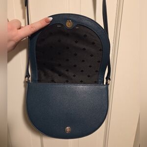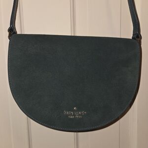Kate Spade dark turquoise Crossbody Saddle Bag suede and pebbled leather bag