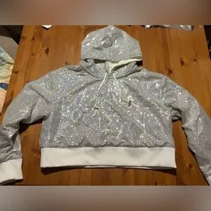 NWOT Peloton x Brittany Allen Silver Sequin Cropped Hoodie