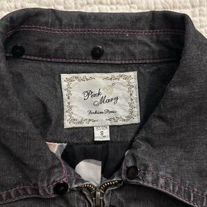 adorable vintage zipup with pink stitching, floral lining, and bedazzled pockets!