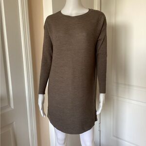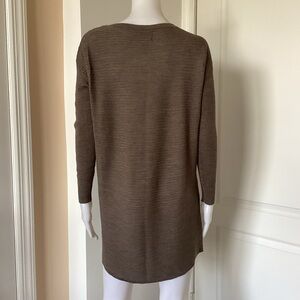 Elegant taupe sweater made from extrafine merino wool. Ideal for stylish comfort. Size M. Pit to pit 21”. Length 30”. New.