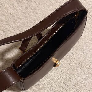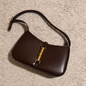 Elegant brown shoulder bag. Features a stylish gold accent. Perfect for any occasion.