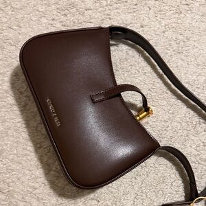 Charles & Keith Brown Shoulder Bag with Gold Accent