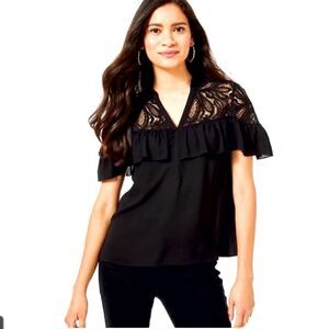 Gorgeous Lily Pulitzer Black Blouse with Ruffle and Lace details. EUC.
