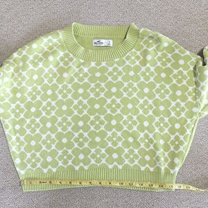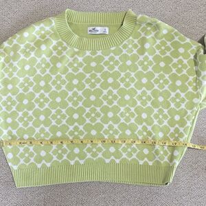 Hollister Retro Green White Flower Crop Sweater - Size Small
