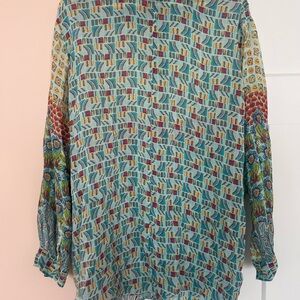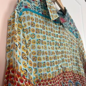 Johnny Was Boho Colorful Floral Copra Rayon Button Down Shirt 1X