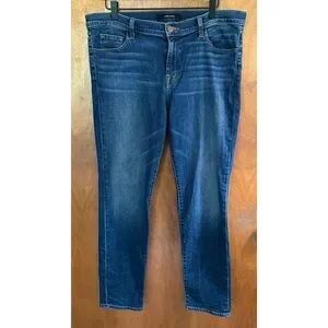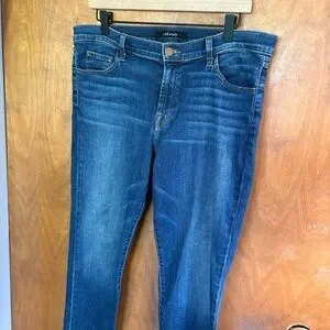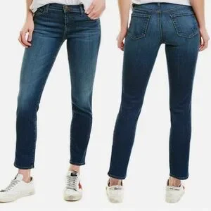 Great pair of J Brand Maude cigarette mid rise jeans in a size 31. They feature front & back pockets, a stretchy cotton blend, a full length, & a dark wash. In great preowned condition.