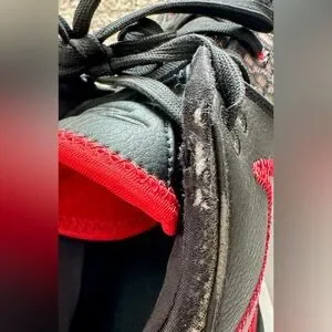 * Note - these were worn for a short time, but the right shoe was worn using a foot brace. Thus, the right shoe is more stretched out than the left, which can be seen in the photos. Other rub marks shown in photos that show inner white of shoes. Offering at a lower price due to these defects.