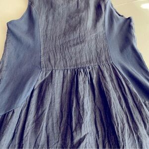Lina Tomei Navy Blue Italy Linen Dress Large Beaded Neck Pocket Sleeveless