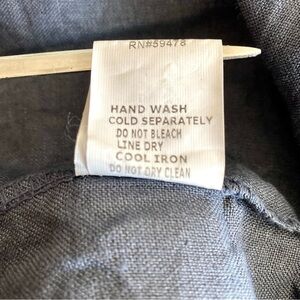 Lina Tomei Navy Blue Italy Linen Shift Dress Sz Large Beaded Neck Pockets