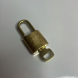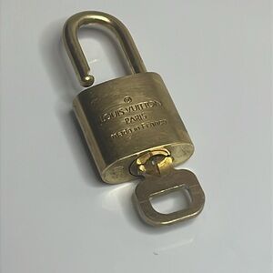 Sophisticated brass padlock with iconic LV engraving. Perfect for securing keys in style.