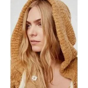 Keywords: Free People sweater, hooded cardigan, knit jacket, cabincore, cozy sweater, neutral sweater, layering piece